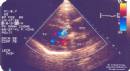 Hình ảnh tách động mạch chủ xuống týp B Stanford trên siêu âm 2 chiều: Lớp nội mạc bị bóc tách chia động mạch chủ thành hai lòng: lòng giả (F) có kích thước lớn hơn lòng thật (T) và đây là một dấu hiệu không tốt đối với bệnh nhân