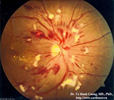 Tổn thương đáy mắt trong THA: xuất huyết hình ngọn lửa, dấu hiệu Gunn, phù gai